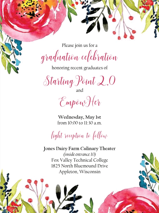 You are invited to celebrate the graduation ceremony for the spring semester of Starting Point 2.0 and EmpowHER students. You will see how these courageous women have taken the first steps toward a brighter future!